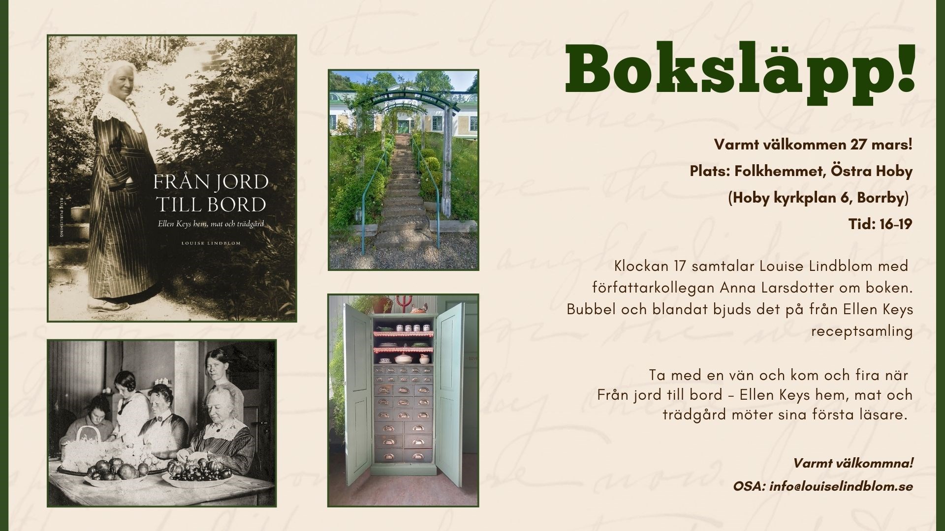 Ytterligare ett tillfälle släpps på  Gunnebo slott där Marie Hjalmarsson Engelke och Louise Lindblom berättar om  Ellen Key, Selma Lagerlöf och Sophie Elkan. Föreläsningen berör de tre kvinnornas liv, författarskap och vänskap under 1889-1926, speglat genom deras brevväxling.